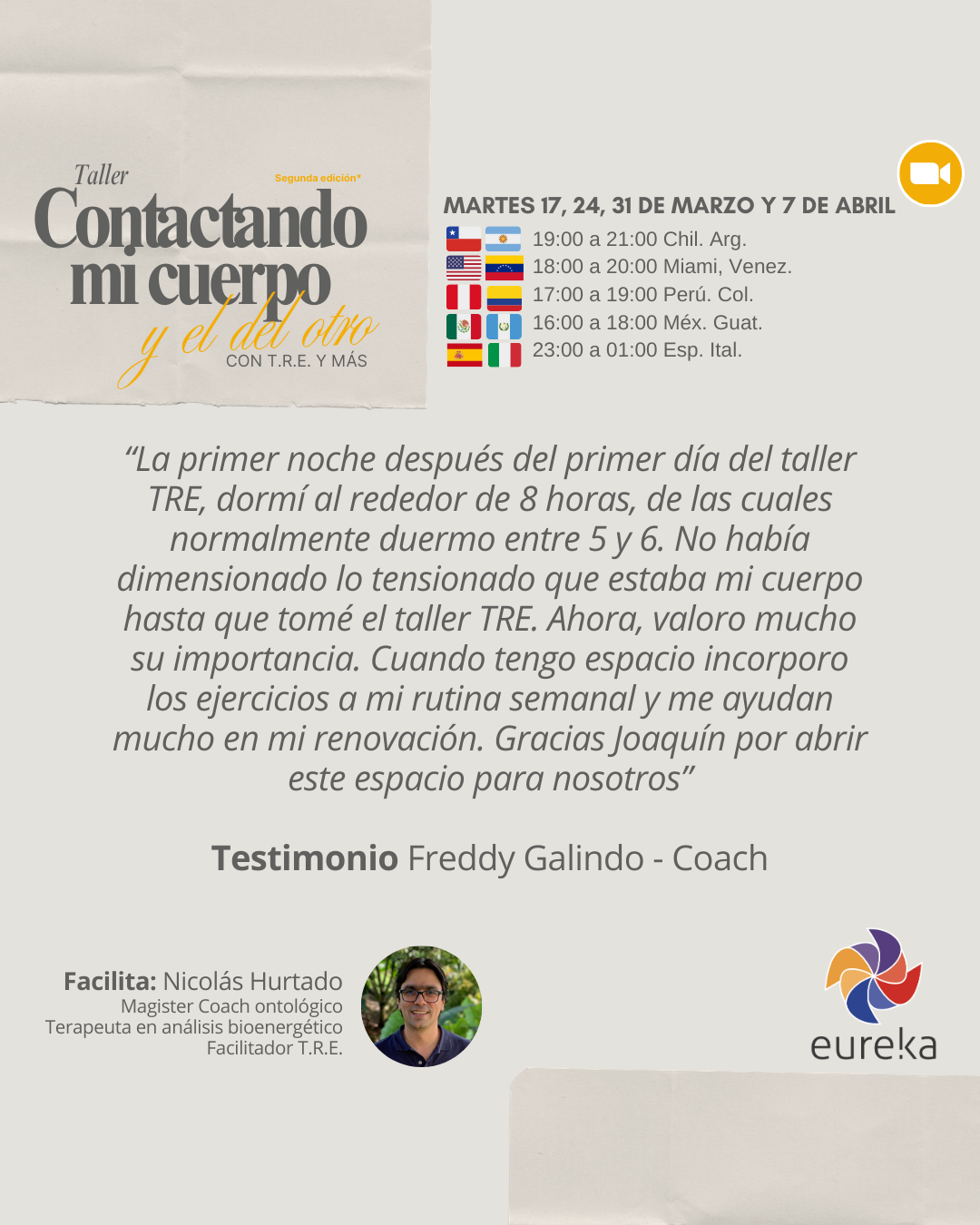 - ¿Puedo hacer el taller si no soy coach? Claro que sí. El área de Eureka se Extiende! es el espacio donde los coaches seguimos aprendiendo desde el aporte de diferentes disciplinas; y donde líderes y profesionales de otros ámbitos se enriquezcan con diversas formaciones atravesadas por la ontología del lenguaje.
