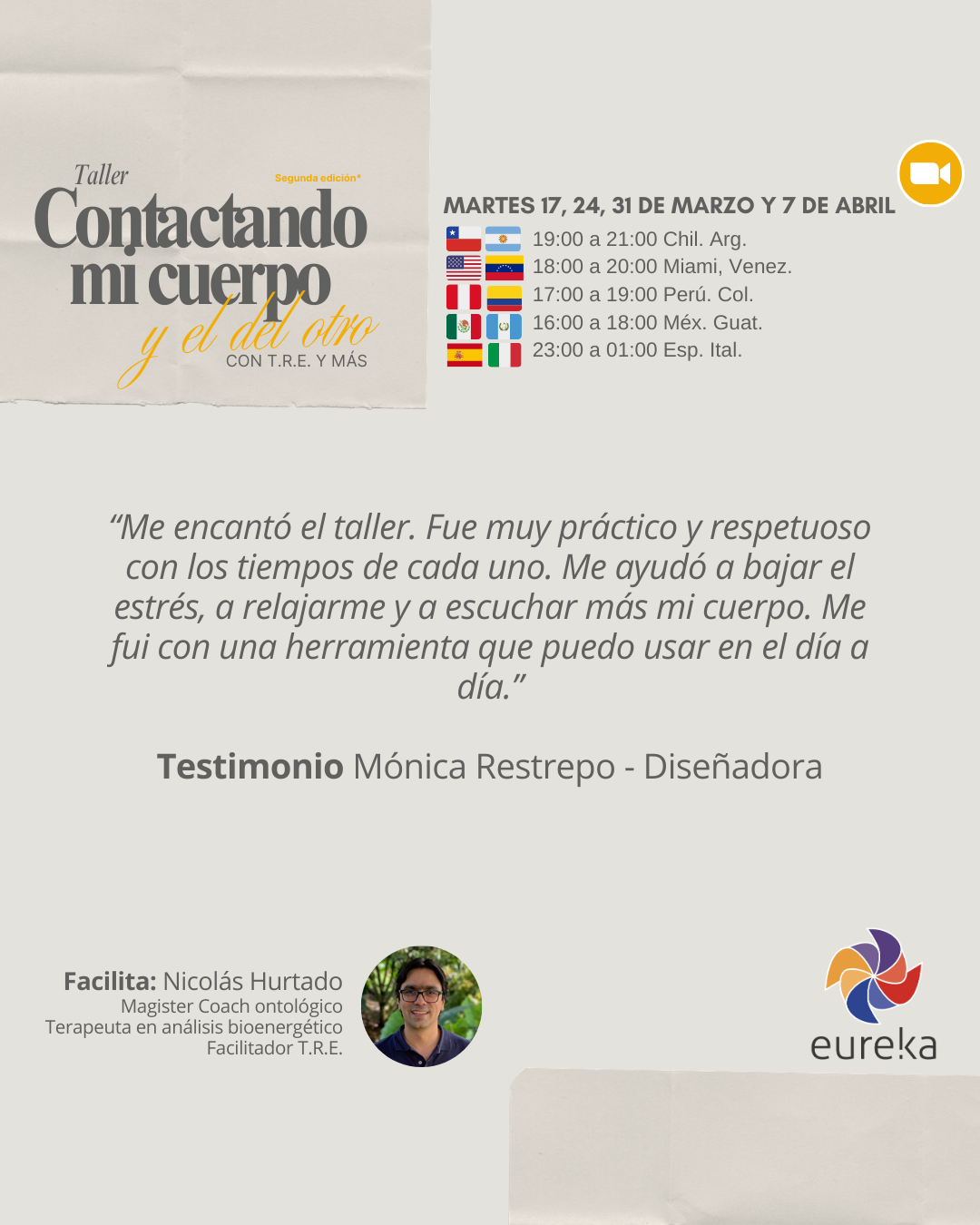 Un espacio vivencial y experiencial en el que los participantes practicarán el TRE y explorarán sus respuestas corporales.